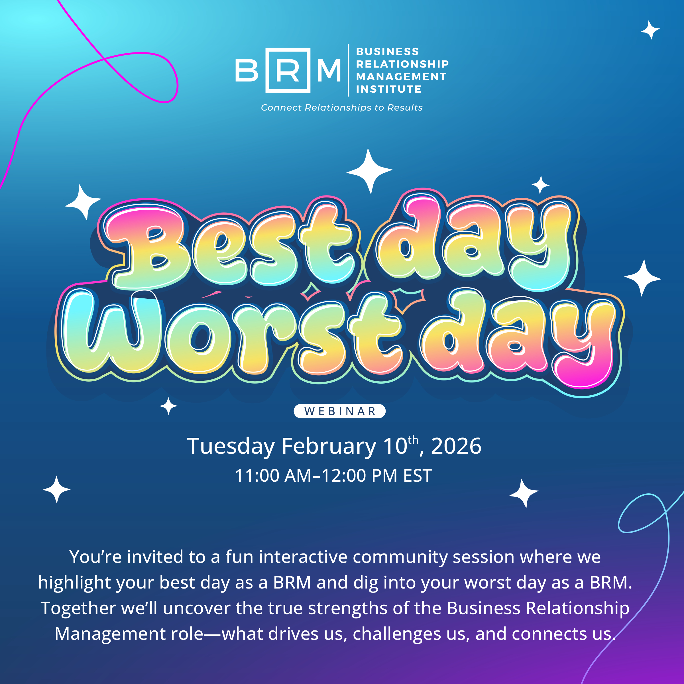 This interactive community session will bring us together to explore your best day as a BRM- those times when your impact was clear, relationships thrived, and value came to life. And, we’ll dive into your worst day as a BRM- when challenges and setbacks pushed you to grow.